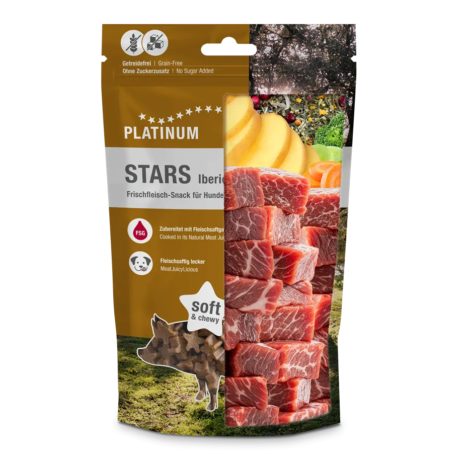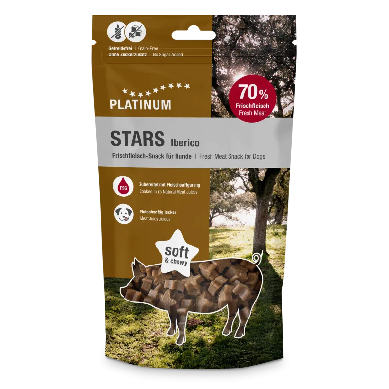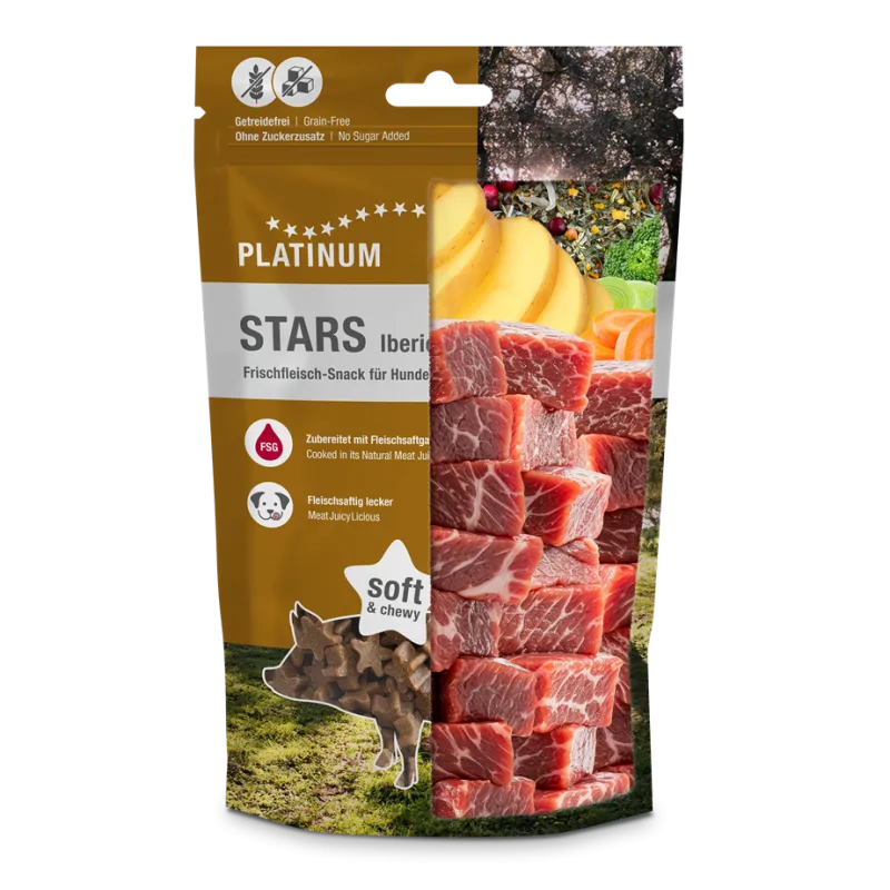 Platinum STARS Iberico värskest lihast valmistatud maiused sobivad suurepäraselt preemiaks ja treeningul kasutamiseks.